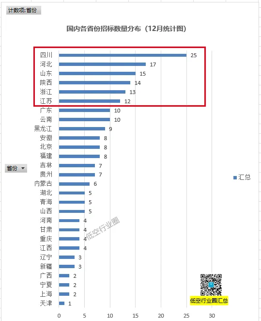 从招标数量来看:除长三角、大湾区等发达区域外,非东部区域,以四川、山东、河北、陕西等为代表等区域活跃度,保持逐渐持续增加,表明低空经济发展,呈现从东向中西扩散态势。
