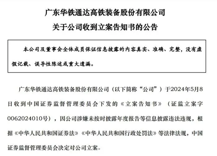 ST华铁公告截图。