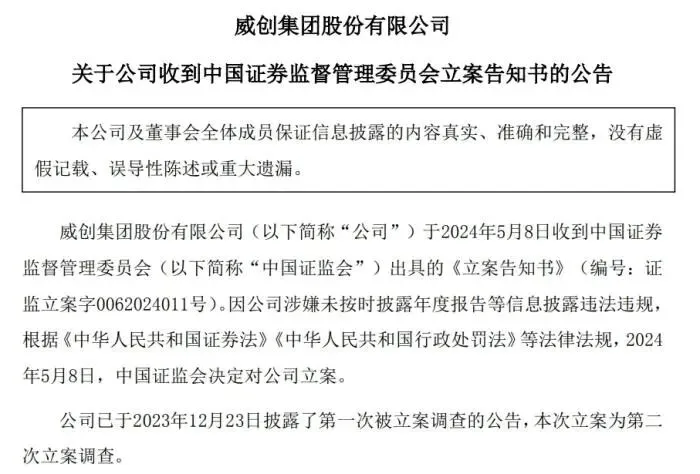 2023年12月,因涉嫌信息披露违法违规,证监会对威创股份等进行了立案调查。之后,证监会将立案调查范围扩大到了上层股东陆克平。如今,陆克平之子陆宇仍为威创股份的董事长。