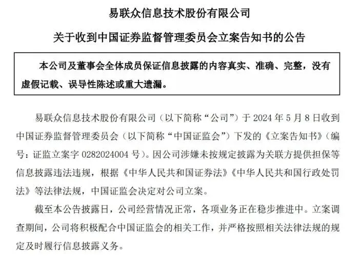ST易联众公告截图。