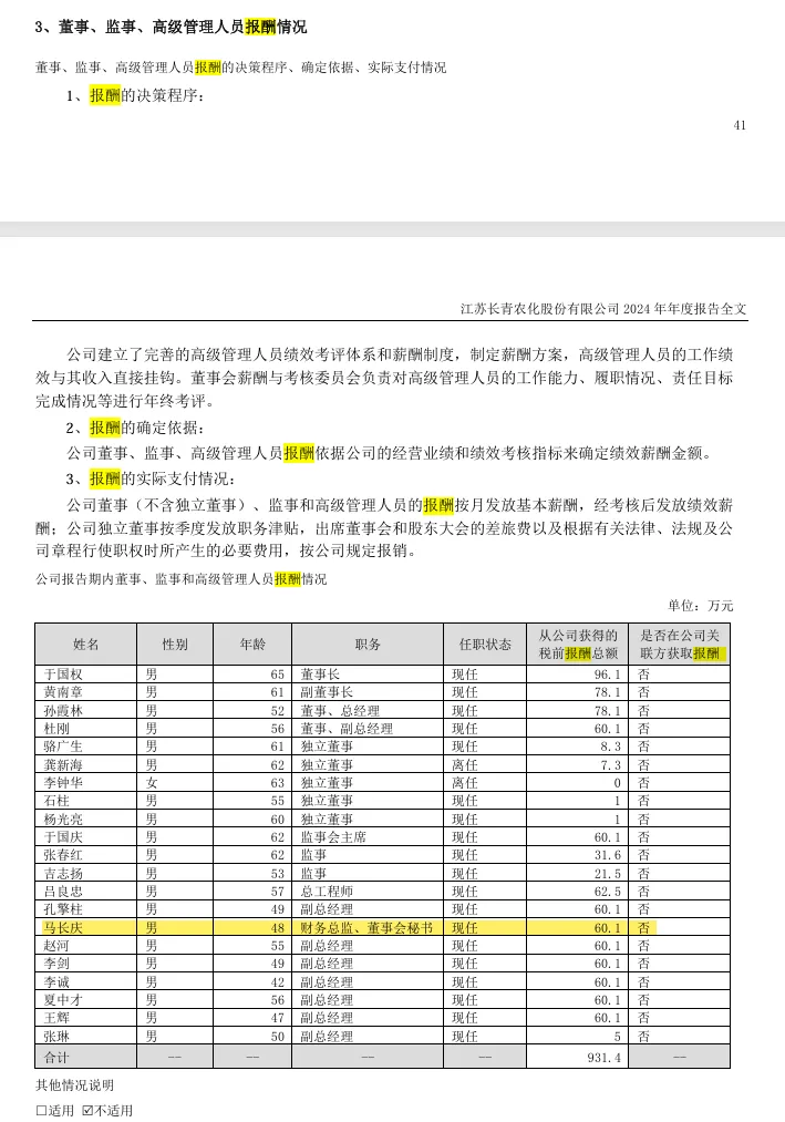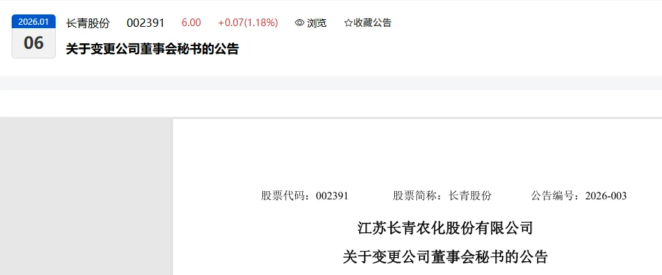 江苏长青农化股份有限公司(以下简称公司)董事会于近日收到公司董事会秘书马长庆先生提交的书面辞职报告。马长庆先生因工作需要,申请辞去董事会秘书职务,其原定任期至第九届董事会届满之日止,辞职后,马长庆先生仍担任公司财务总监职务。根据《深圳证券交易所上市公司自律监管指引第1号——主板上市公司规范运作》等的相关规定,马长庆先生的辞职报告自送达公司董事会之日起生效。截至本公告日,马长庆先生持有公司股份685,000股,马长庆先生不存在应当履行而未履行的承诺事项。