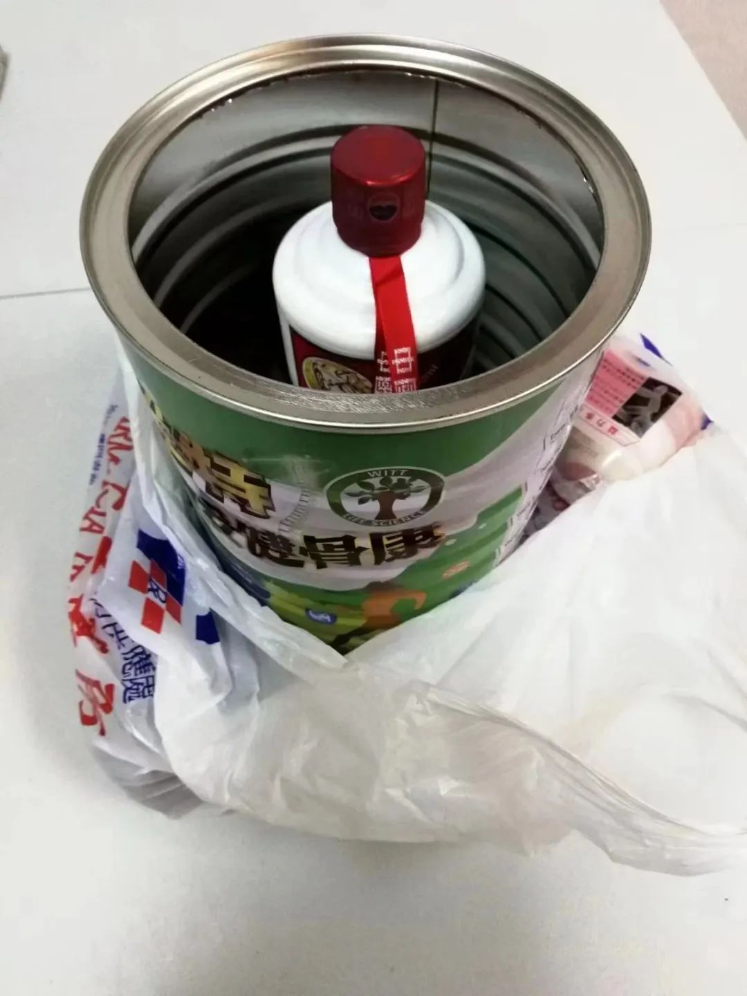 本月30日下午,海關人員在關閘口岸出境旅客檢查區發現一名女子形跡可疑,其手持物品異常沉重,懷疑藏有可疑物品,經使用X光機對其隨身攜帶物品進行檢查後,揭發該名女子利用奶粉罐及手提袋作掩飾將3支中國白酒藏於其中,試圖矇混過關。
