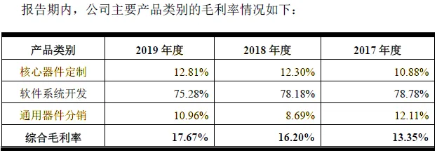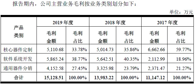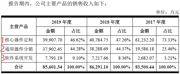 华安鑫创主营业务收入有三项:核心器件定制、通用器件分销和软件系统开发。