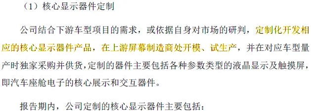 招股说明书对第1项业务的解释,“核心器件定制”业务是发行人完成相关产品的开发,然后找屏幕制造商开模、生产,我们将其简称为“定制”业务。