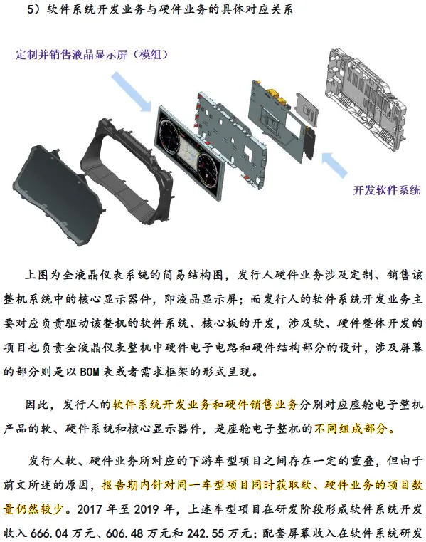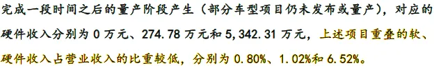 根据发行人的招股说明书披露:软件开发业务和硬件销售业务对应的系统和器件是汽车座舱电子整机的不同组成部分,针对同一车型项目同时获取软、硬件业务的项目数量依然较少,重叠的软、硬件收入占营业收入的比重较低,分别为0.80%、1.02%和6.52%。