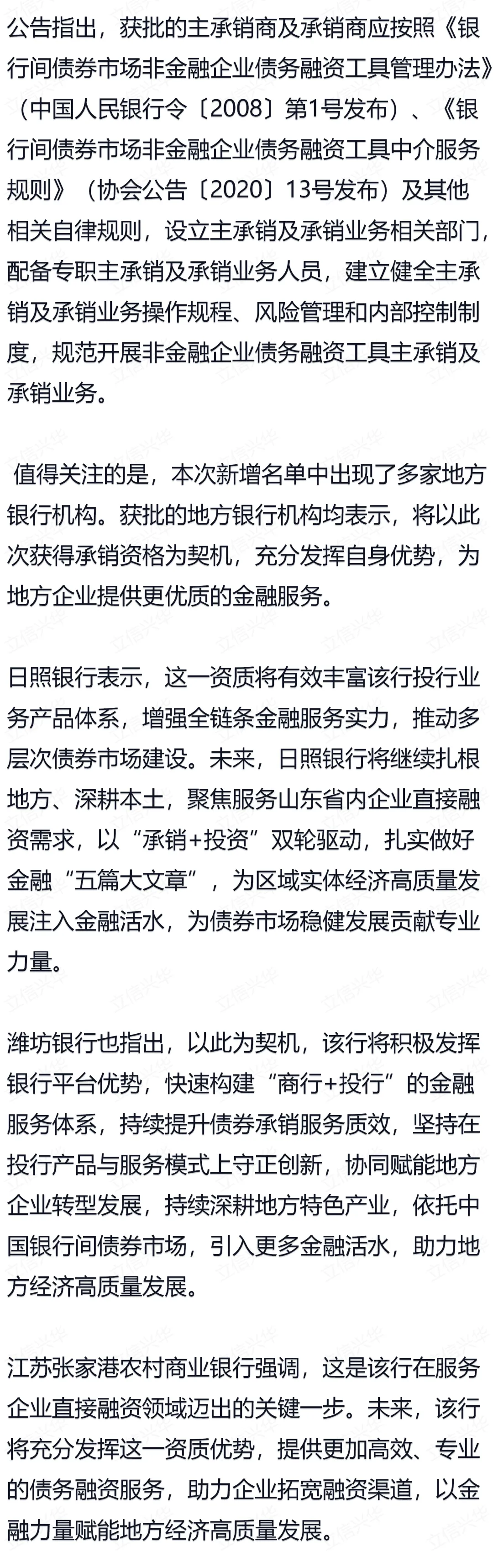 多家地方银行获批非金融企业债务融资工具承销业务资格