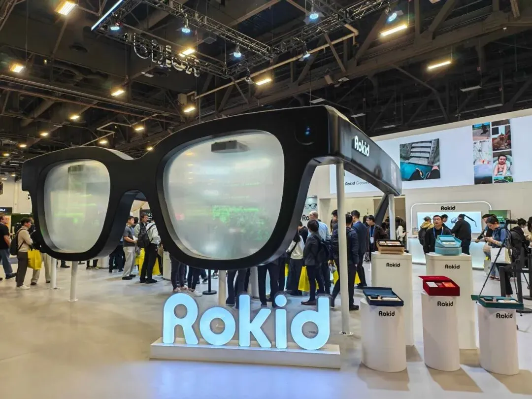 Rokid也是搬了整个眼镜模型过来,很吸引眼球,客户人数最多。