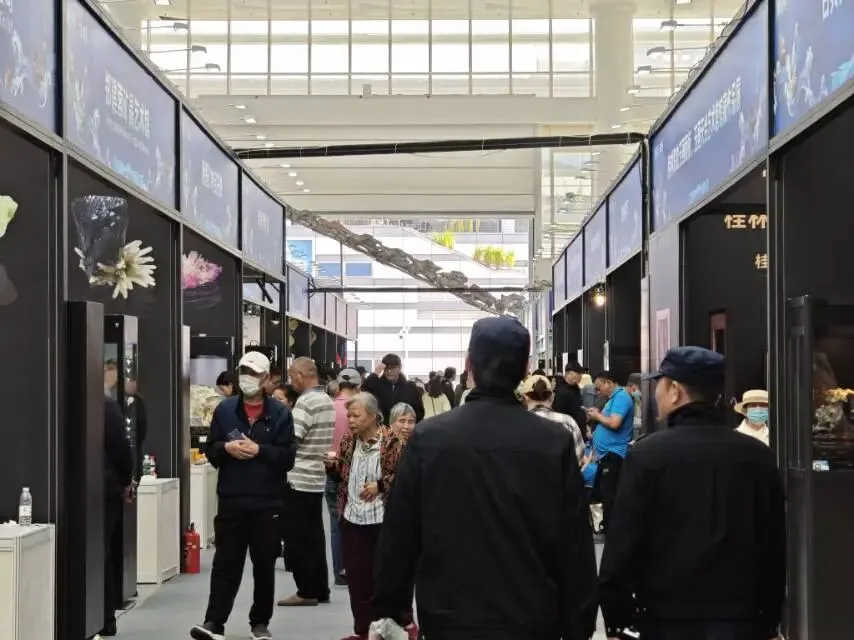 展会现场,人潮涌动,通道里挤满了前来参观的游客和业内人士。大家一边仔细欣赏着展品,一边热烈地交流着对观赏石的见解和心得。不少游客表示,此次博览会让他们大开眼界,对观赏石文化有了更深入的了解。