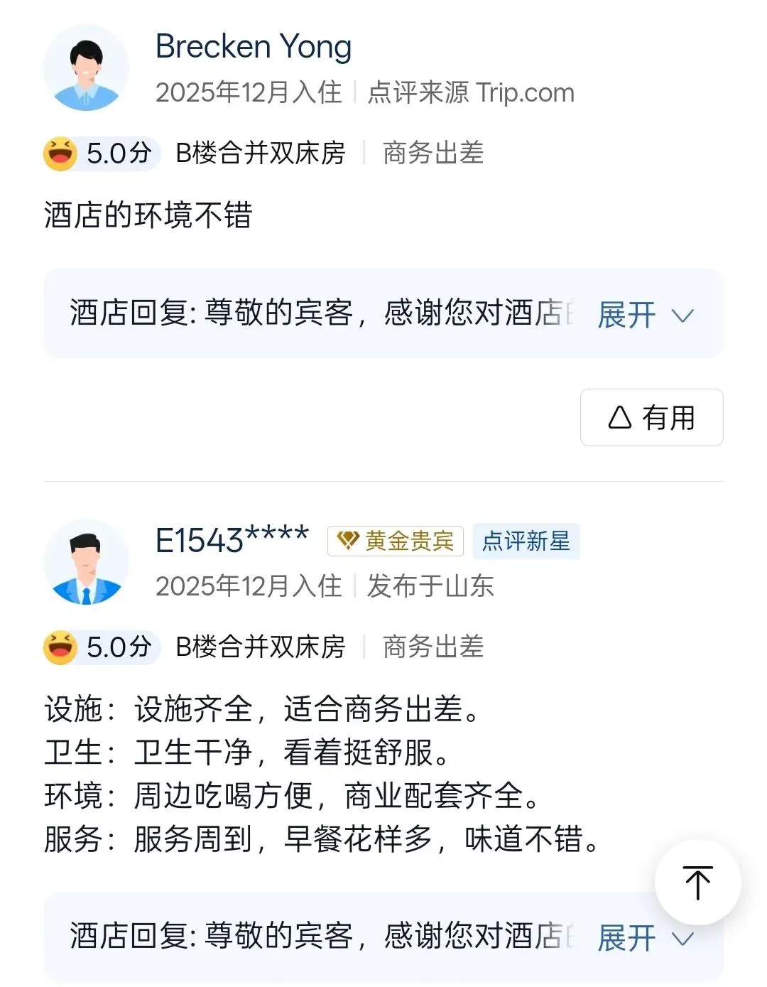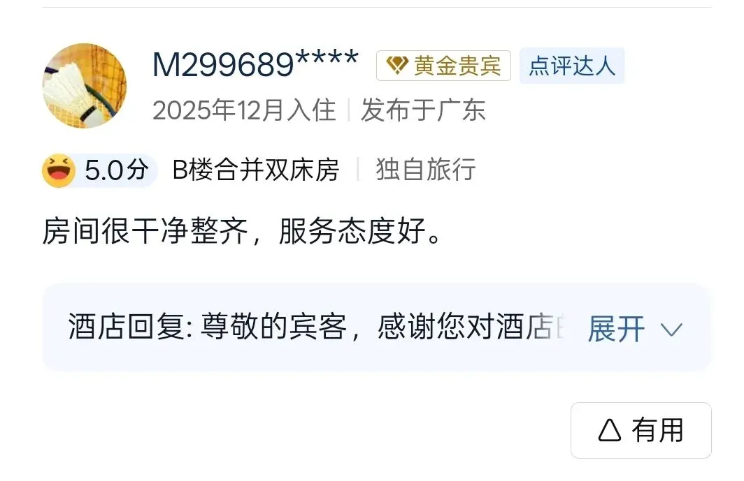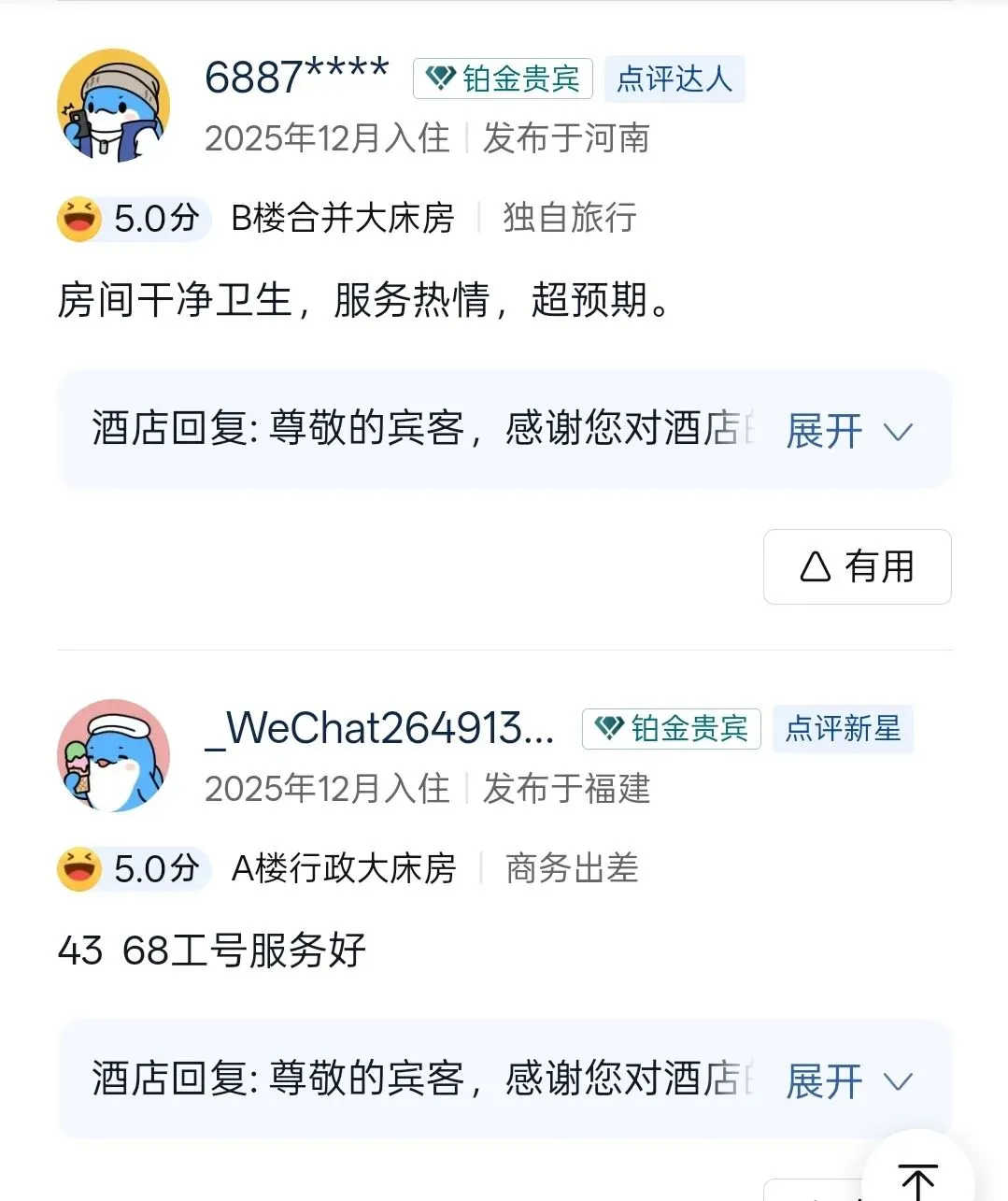 酒店始终秉承“全心全意以客为尊”的服务理念,以卓越优质的服务诠释待客之道,受到宾客的好评。我们将持续优化酒店细节服务品质,推动酒店服务再上新台阶,提升酒店良好品牌形象。