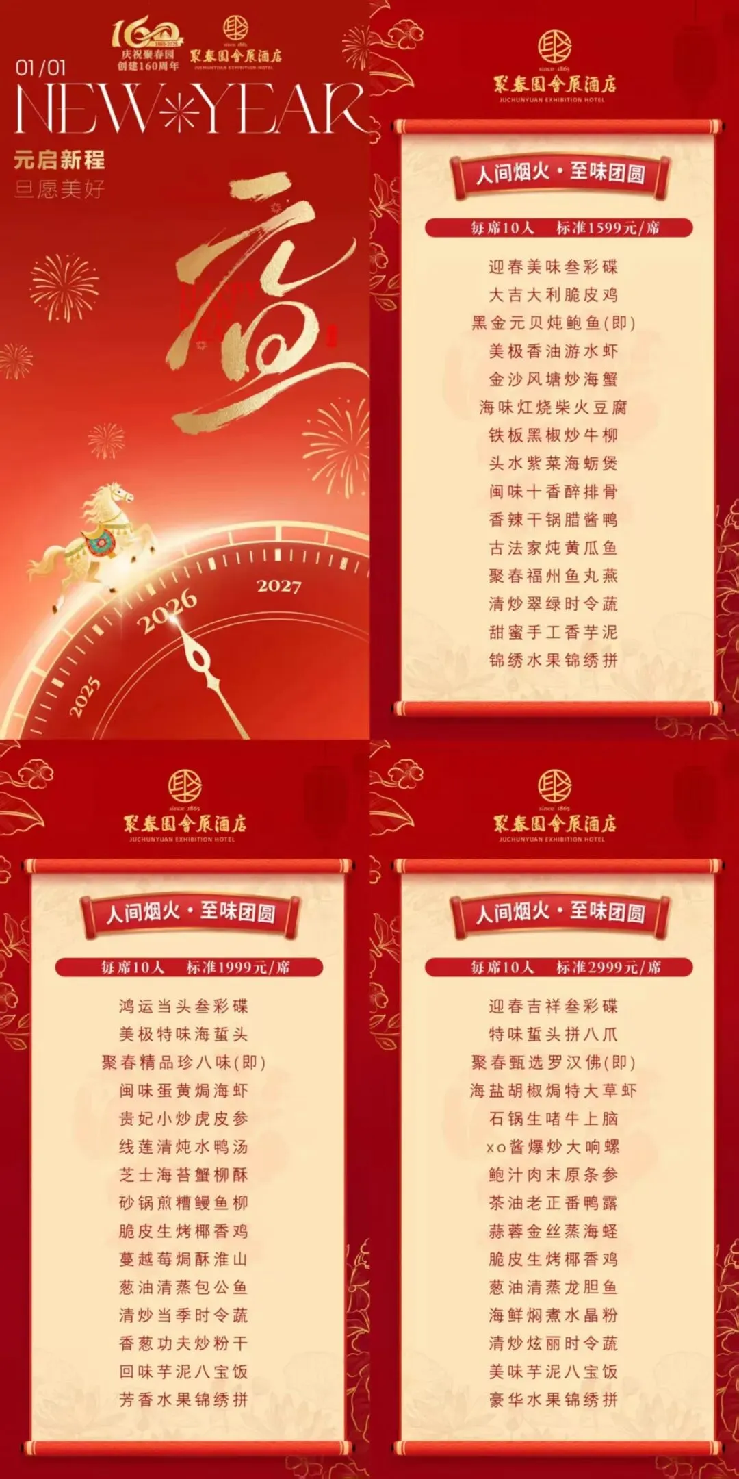 酒店推出元旦家宴套餐,为宾客提供多款套餐选择、多重优惠,元旦家宴火爆预订中,超越您的期待!