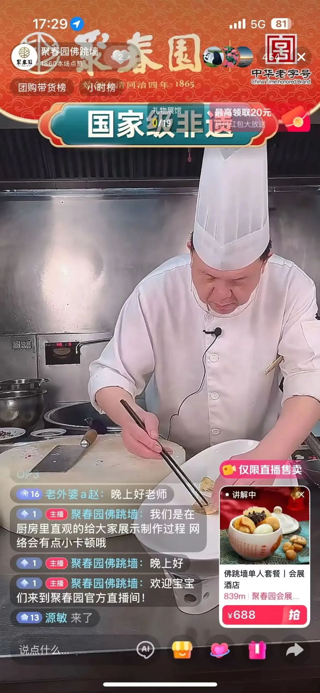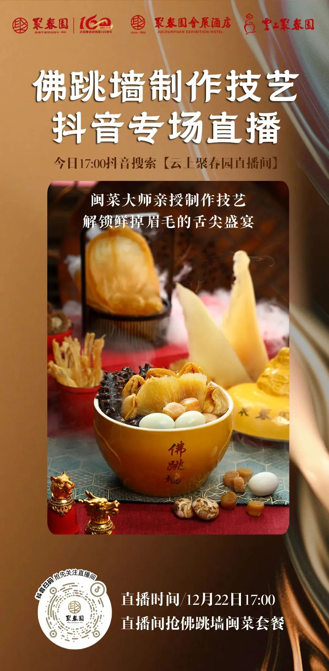 佛跳墙制作技艺抖音专场直播,闽菜大师亲授制作技艺解锁鲜掉眉毛的舌尖盛宴,提升酒店品牌影响力,助力营收增长。