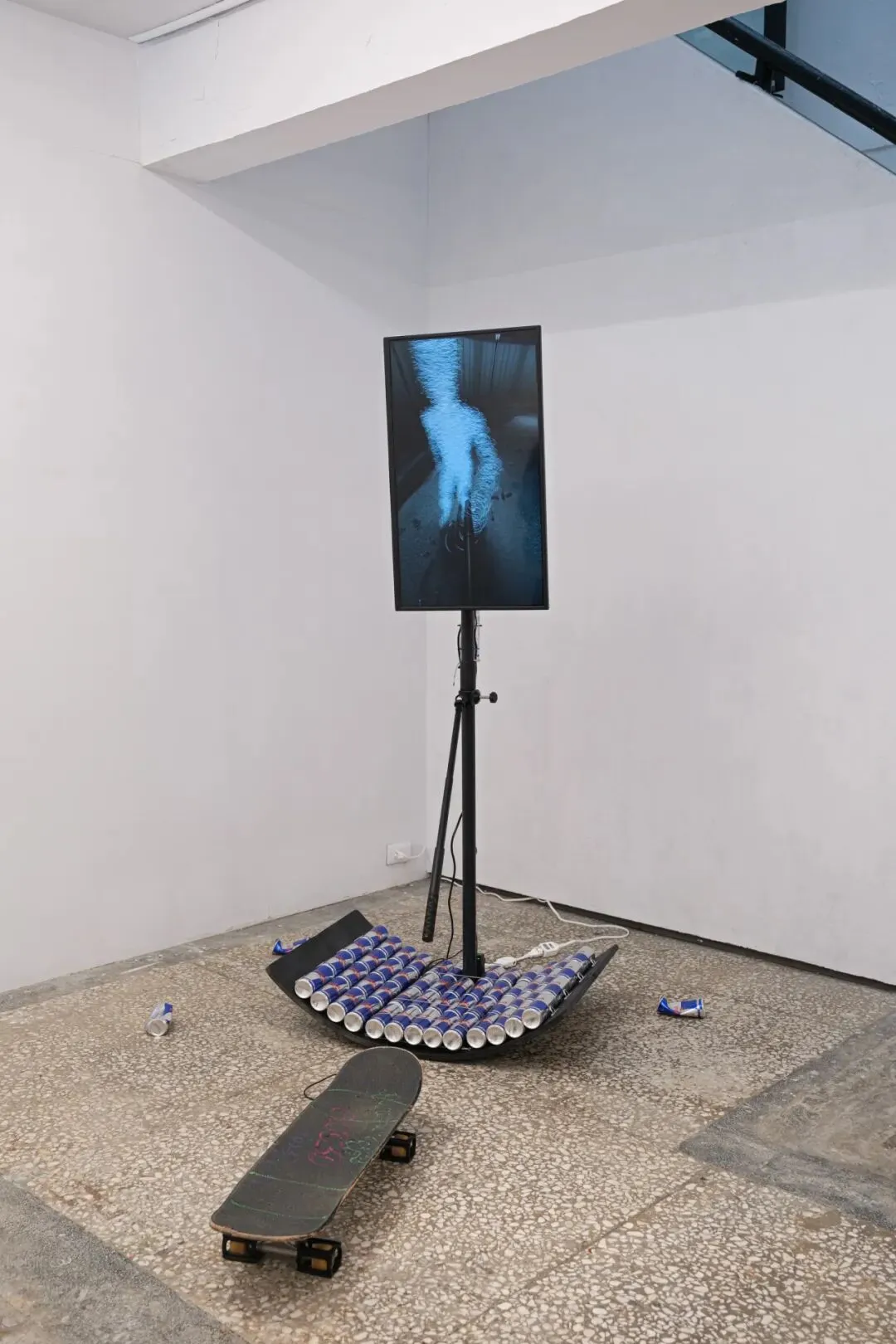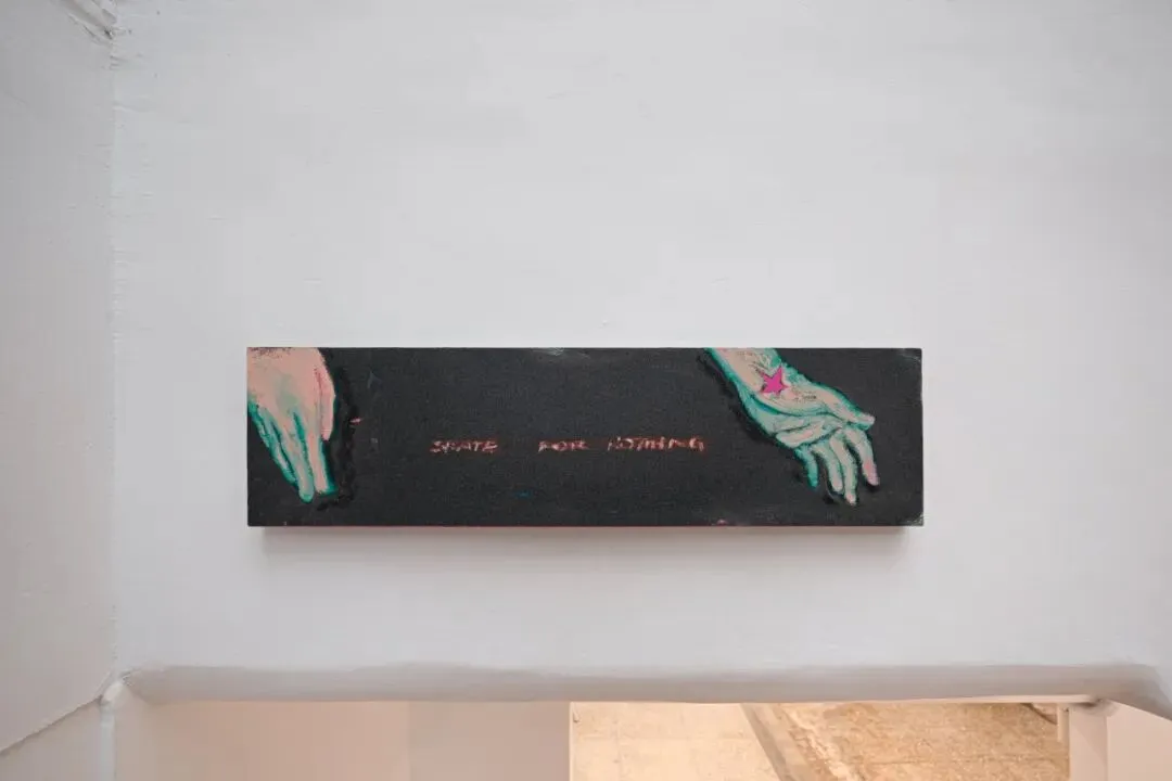 本次展览如同一场既亲密又公共的实验,三位创作者从不同媒介出发:林恩仑的雕塑将公共空间中的障碍物弯曲、重复与变形,松动人们习以为常的规范逻辑;曹恒诚的影像作品透过个人形象与体感的塑造,开展对观看方式与空间经验的探索;苏煌盛的绘画则以跳跃、腾空与视角转换,隐喻身体在运动中所经历的敏锐变化与心理状态。滑板经验为我们提供了一种不同于日常的理解方 式,如同创作以各种别于以往的表现力来辨识自身、形塑认同与发现价值。展览本身宛如一个非线性的时间装置,借由时间回返、空间错置、身体感知与感性的相互支持来维系彼此的连结。它从一次次深夜的练板谈话而来,扩展到当代都市社会中的共同生存经验,作品所呈现的不仅是三位创作者的个人轨迹,更是整个世代在城市缝隙中留下的时空印记。