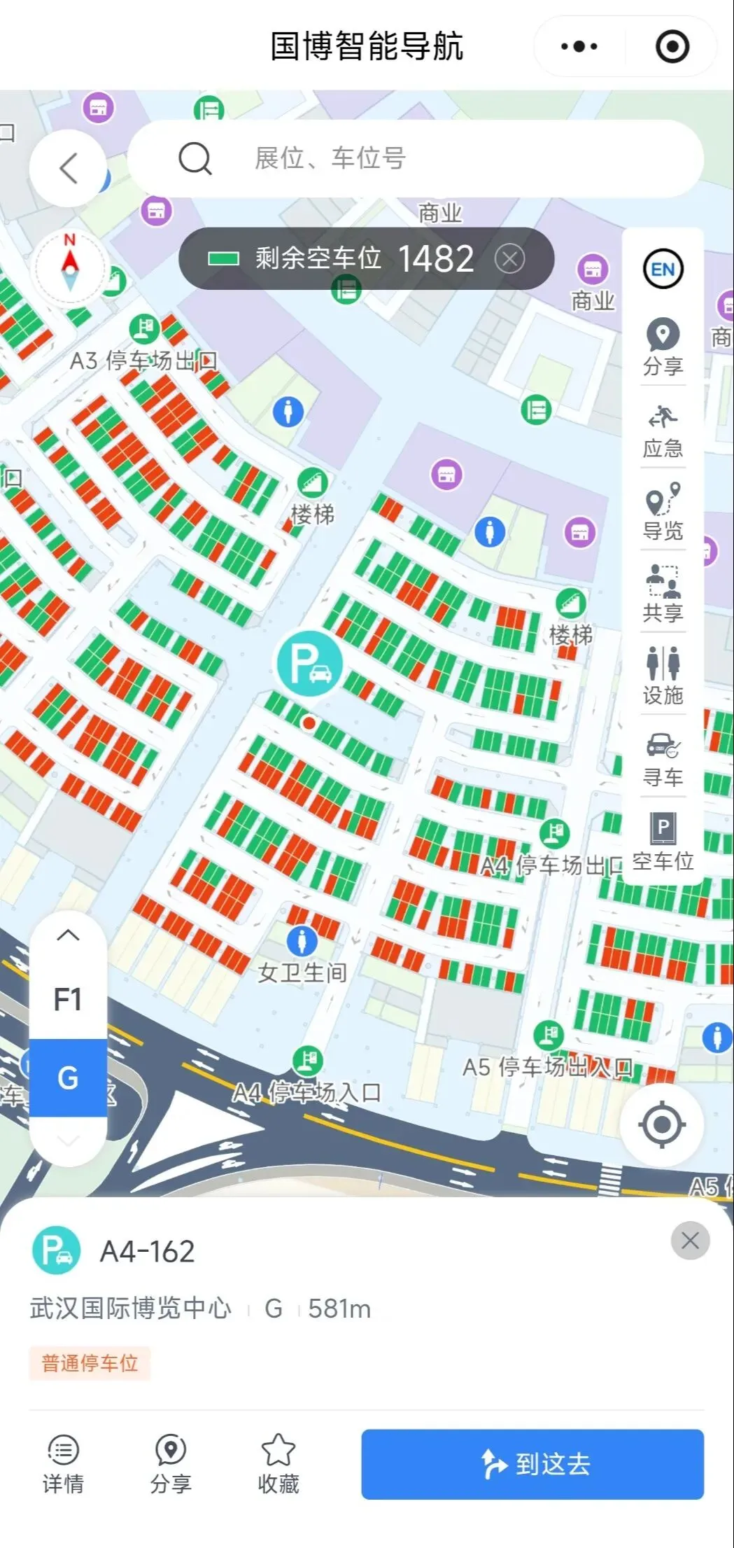智慧导航方面,携手华中科技大学启动“展馆智能交互环境项目”,部署近9000个定位信标与1200余个车位传感器,实现了展位精准导航、车辆反向寻车、应急智能疏导等核心场景的多维度覆盖。针对食材节等人流广、面积大的展会,更新高精度室内地图,完善参展商、展品信息集成与“扫码一键导航”功能,显著提升了参展效率与商务对接便利性。