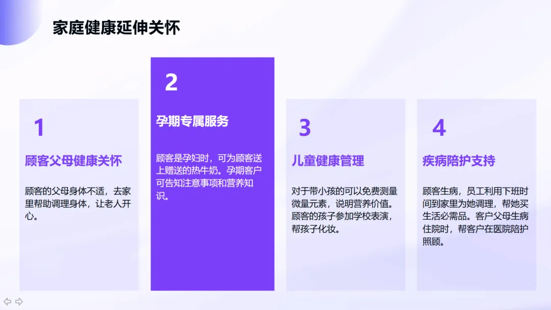 健康关怀维度:从为肠胃不适顾客送粥到为睡眠不好顾客送薰衣草枕,甚至提供免费体检名额,企业扮演了“健康管家”角色。