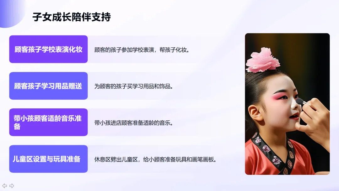 家庭延伸维度:服务对象从顾客本人延伸至其家庭。帮顾客接送孩子、为顾客孩子化妆、设置儿童游乐区,乃至为顾客父母送生日祝福,构建了“家庭式关怀”网络。