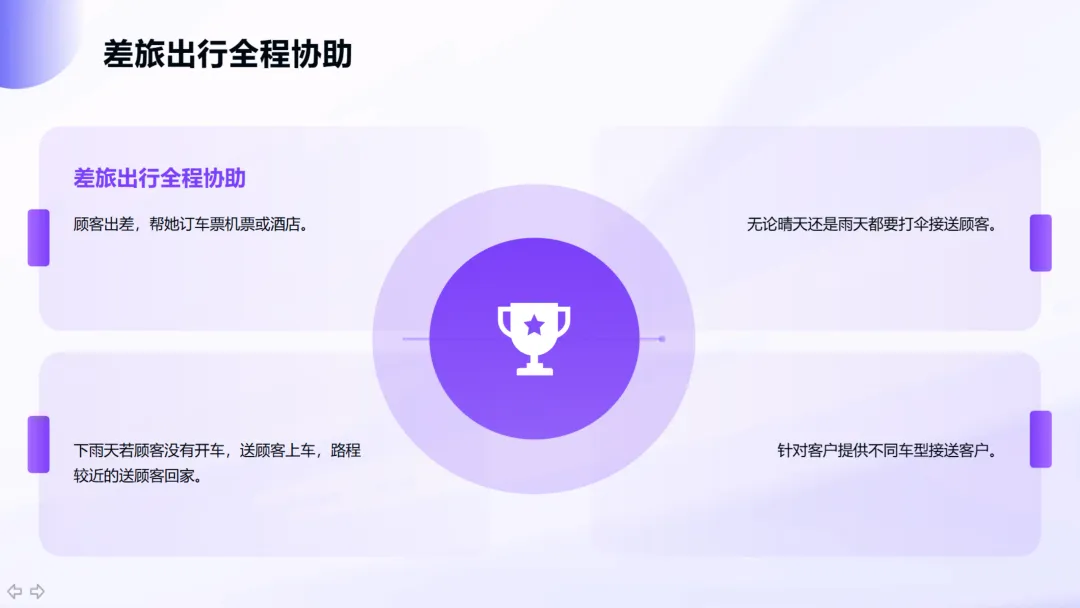 应急便利维度:雨天打伞接送、提供手机充电服务、准备医药箱、免费代驾……这些举措在顾客急需时提供“及时雨”般的帮助。