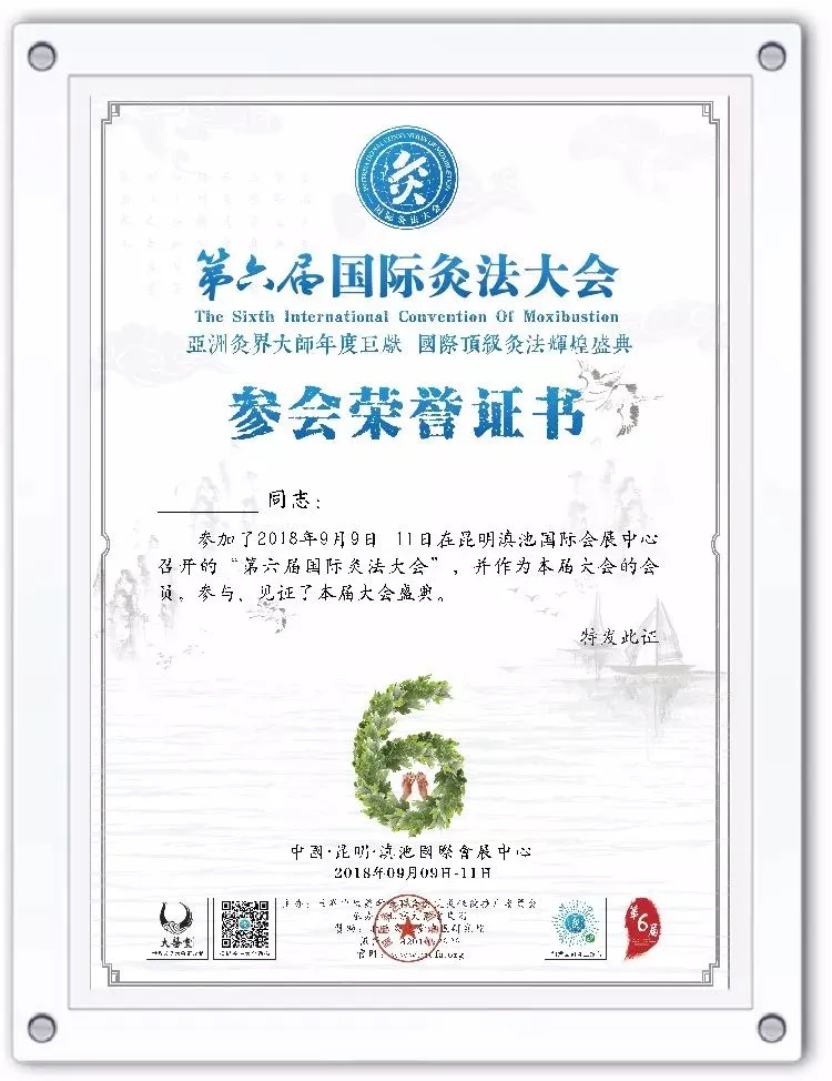 国际灸法大会会员签到专用、人手一份