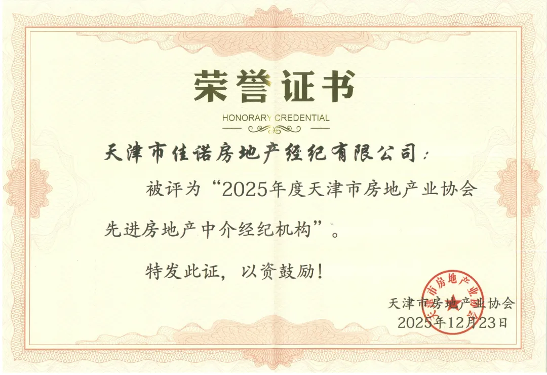 从扎根天津到深耕 21 载,佳诺的每一步成长都离不开本土家庭的信赖与支持。这份 “先进机构” 的荣誉,是专业的见证,更是责任的延续;而 “真诚”,则是佳诺 21 年始终不变的底色 —— 不辜负每一份托付,不怠慢每一次信任,用专业护航交易,用真诚温暖安家。天津买房卖房,选佳诺,就是选 21 年本土品牌的靠谱保障,就是选值得托付的房产服务伙伴!