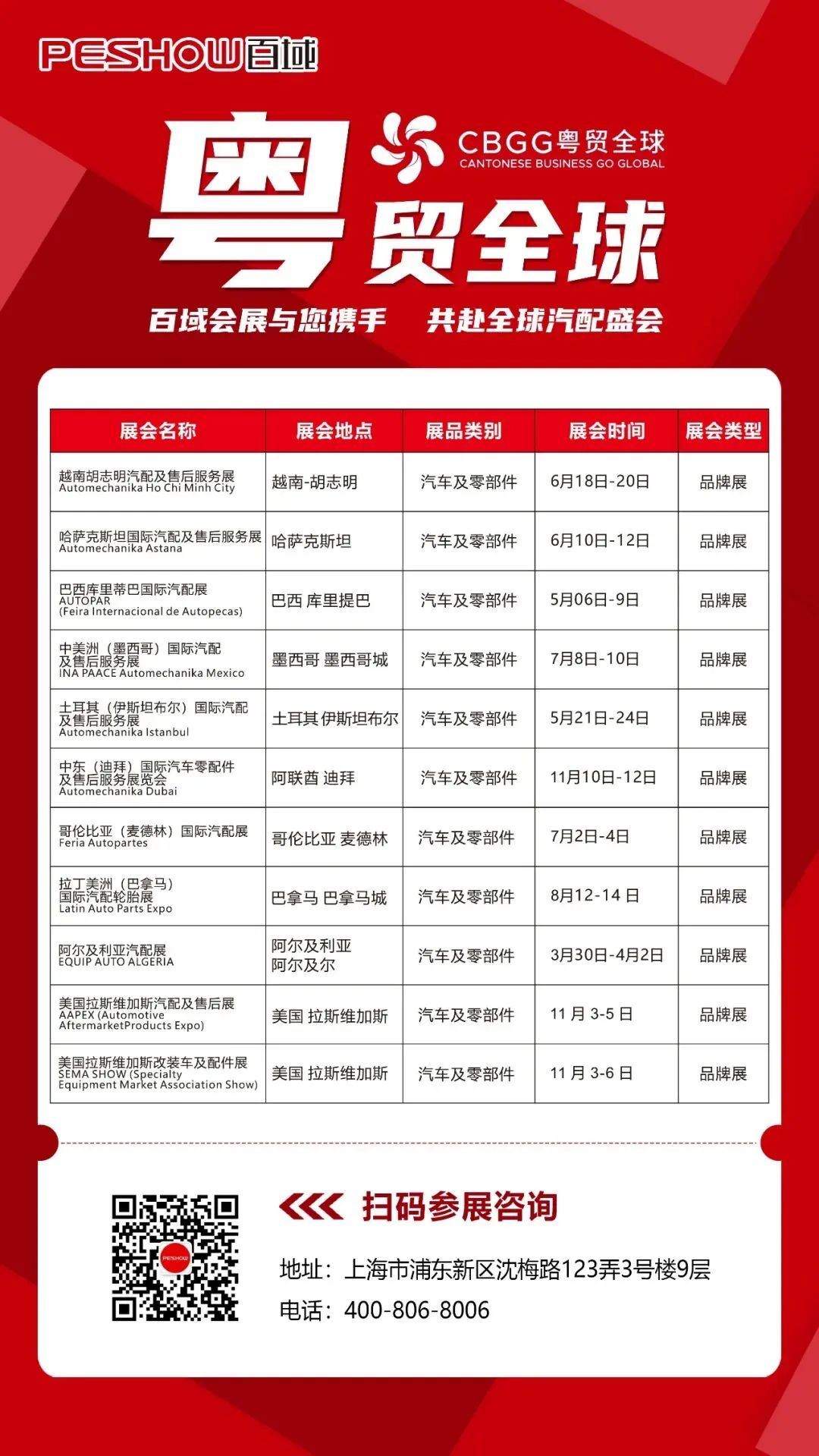 百域会展,深耕海外汽配展会多年,不仅带您叩开世界大门,更以专业赋能让您在国际市场中被关注、被铭记、被选择!