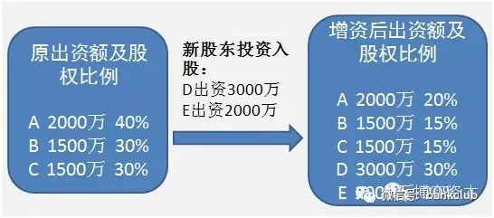 【微案例】甲有限责任公司有A、B、C(投资机构)三位法人股东,原注册资本和实收资本只有5000万元,于2010年初设立,经过两年多的经营,取得了一定的经济效益,但还没有进行过股利分配。甲公司董事会提出、股东会决议通过:新增法人股东D、E(投资机构)分别投资3000万、2000万入股,则入股前后出资额及股权比例如下: