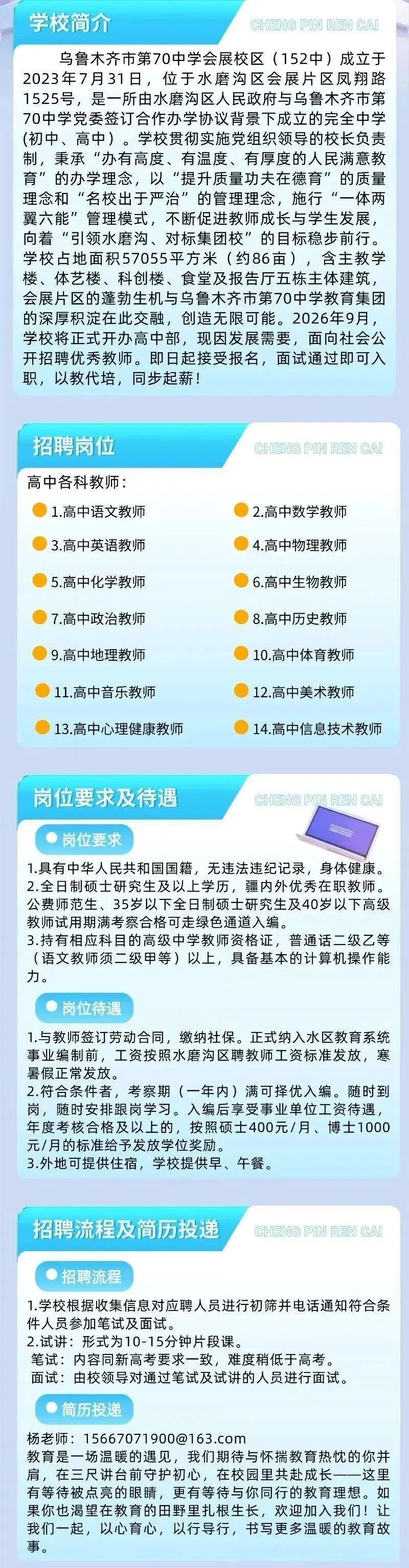 乌市第70中学会展校区(152中)高中教师招聘公告