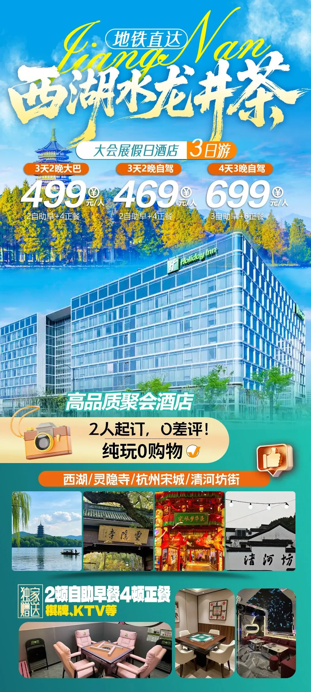 【宿】2晚杭州会展中心假日酒店,纯玩更安心