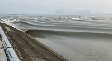 当江湖奔腾而至,撞坝生澜,形成惊险的“回头潮”与冲天水幕。阳光下,浪花碎玉飞溅,映出虹彩;江风拂面,渔舟唱晚,诗意盎然。