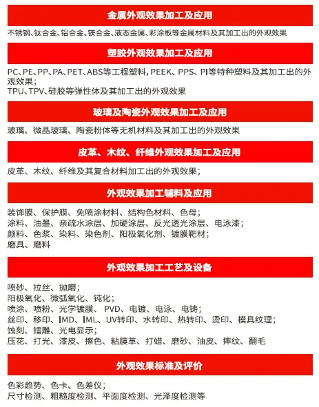 2021年7月29日-31日,第5届国际新材料新工艺及色彩(简称CMF)展览会暨第五届外观效果加工及应用展览会将继续举办,届时将呈现3大主题展会,包括第五届智能硬件(消费电子)外观效果加工及应用展览会、第五届智能家居(家电及家具)外观效果加工及应用展览会、第五届智慧交通(汽车、轨交)内外饰加工及应用展览会。
