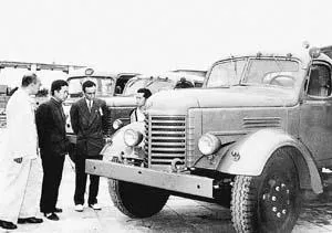 △1957年秋,客商在第二届广交会上洽谈解放汽车项目