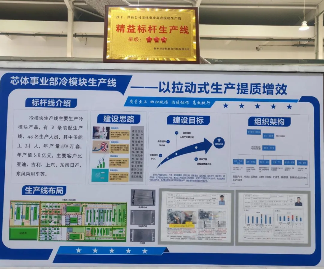 芯体事业部冷模块总成线经过近半年的建设,在十一月份顺利通过新航科技两轮达标验收,被授予“三星级精益标杆生产线”。