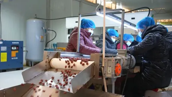 员工们在筛选红枣。