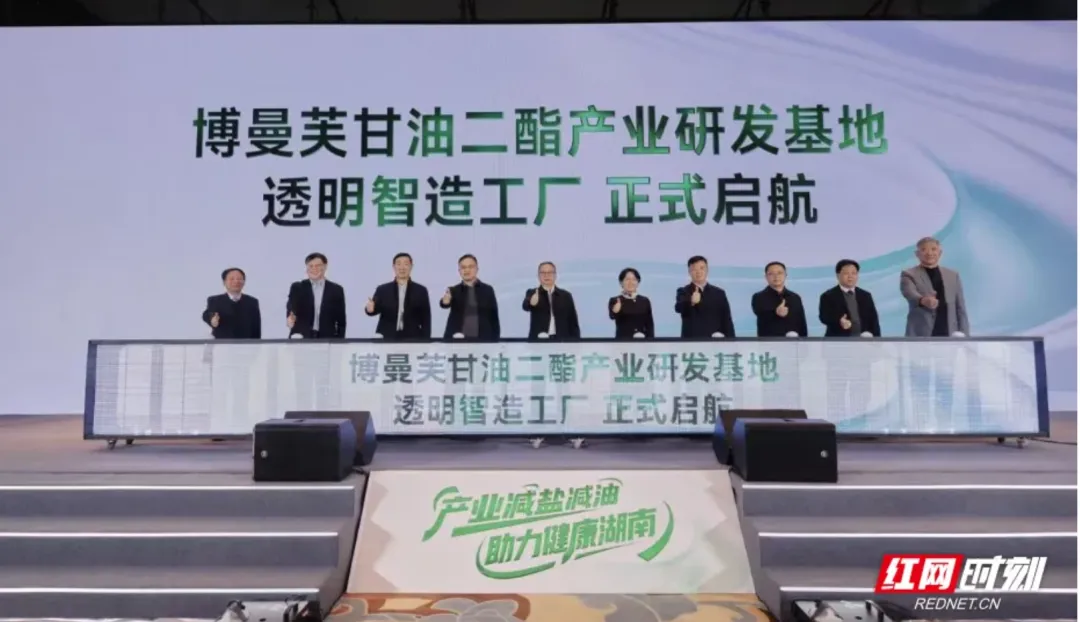 12月28日,湖南省“减盐减油”食品研发创新与产业发展论坛在长沙市望城区举行。论坛期间,博曼芙甘油二酯产业研发基地·透明智造工厂投产仪式,成为本次活动的一大焦点,也标志着湖南“减盐减油”专项行动迈出了由政策倡导走向产业化落地的关键一步。