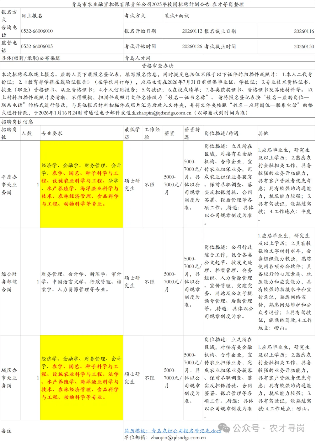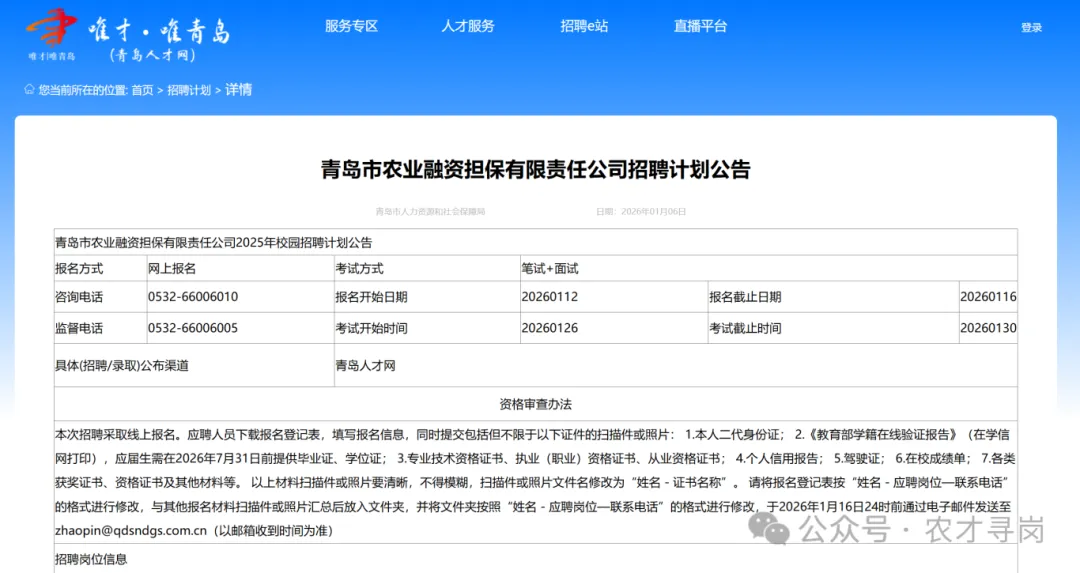 企业招聘 | 青岛市农业融资担保有限责任公司招聘计划公告