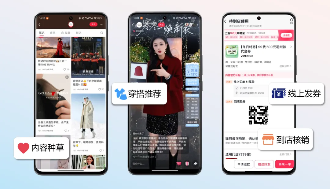 在内容平台上一篇穿搭笔记、一段短视频,已经能无缝完成从种草到拔草的消费的闭环。内容即货架、点赞即订单等创新商业交融模式,已贡献了线上服装销售额的25%-30%,重塑了消费的新起点。
