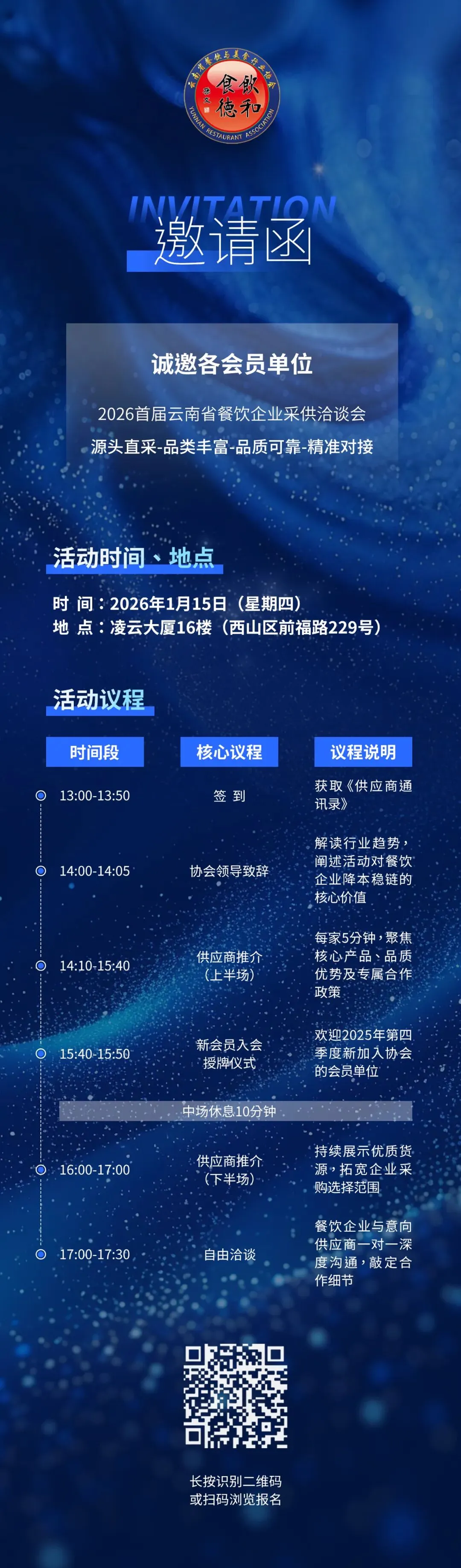 有意向的餐饮企业请于2026年1月12日17点前扫描下方二维码报名。