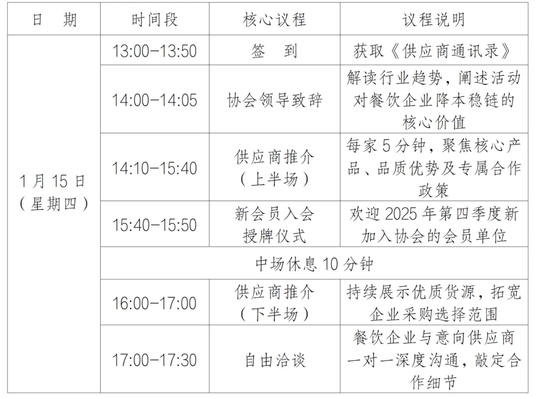 在餐饮行业竞争日益激烈的当下,为有效解决餐饮行业存在的“采购成本居高不下、供应链波动频繁、优质货源难以寻觅”等共性问题,协会历经一个月在全省范围内进行征集与筛选,遴选出高性价比、标准化程度高且配送有保障的优质餐饮大单品。现定于2026年1月15日举办“2026首届云南省餐饮企业采供对接洽谈会”。本次活动以“降本增效、品质升级、稳链赋能”为核心目标,旨在助力餐饮企业精准对接源头资源,达成采购成本优化、菜品结构升级以及供应链稳定可控的目标。