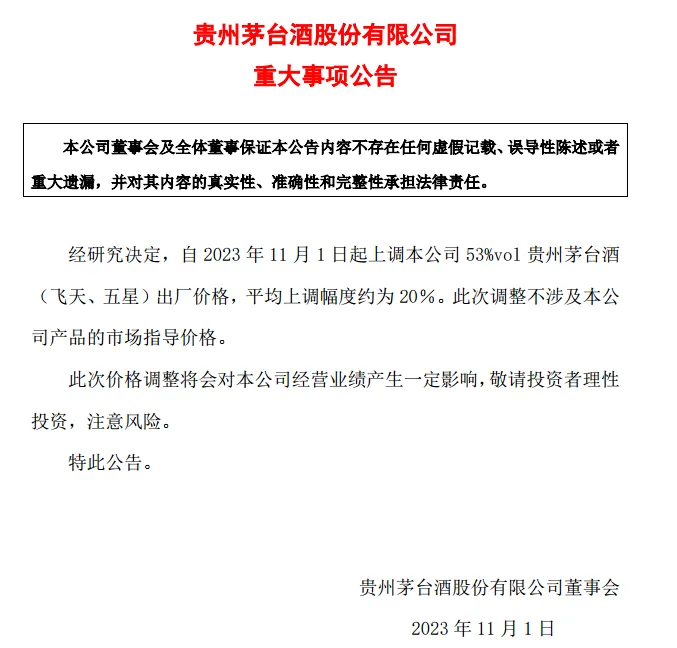 这个价格的特点是“稳”——调整频率极低,通常数年才会变动一次。最近一次调整是2023年11月1日,从969元/瓶上调20%至1169元/瓶,至今保持稳定。