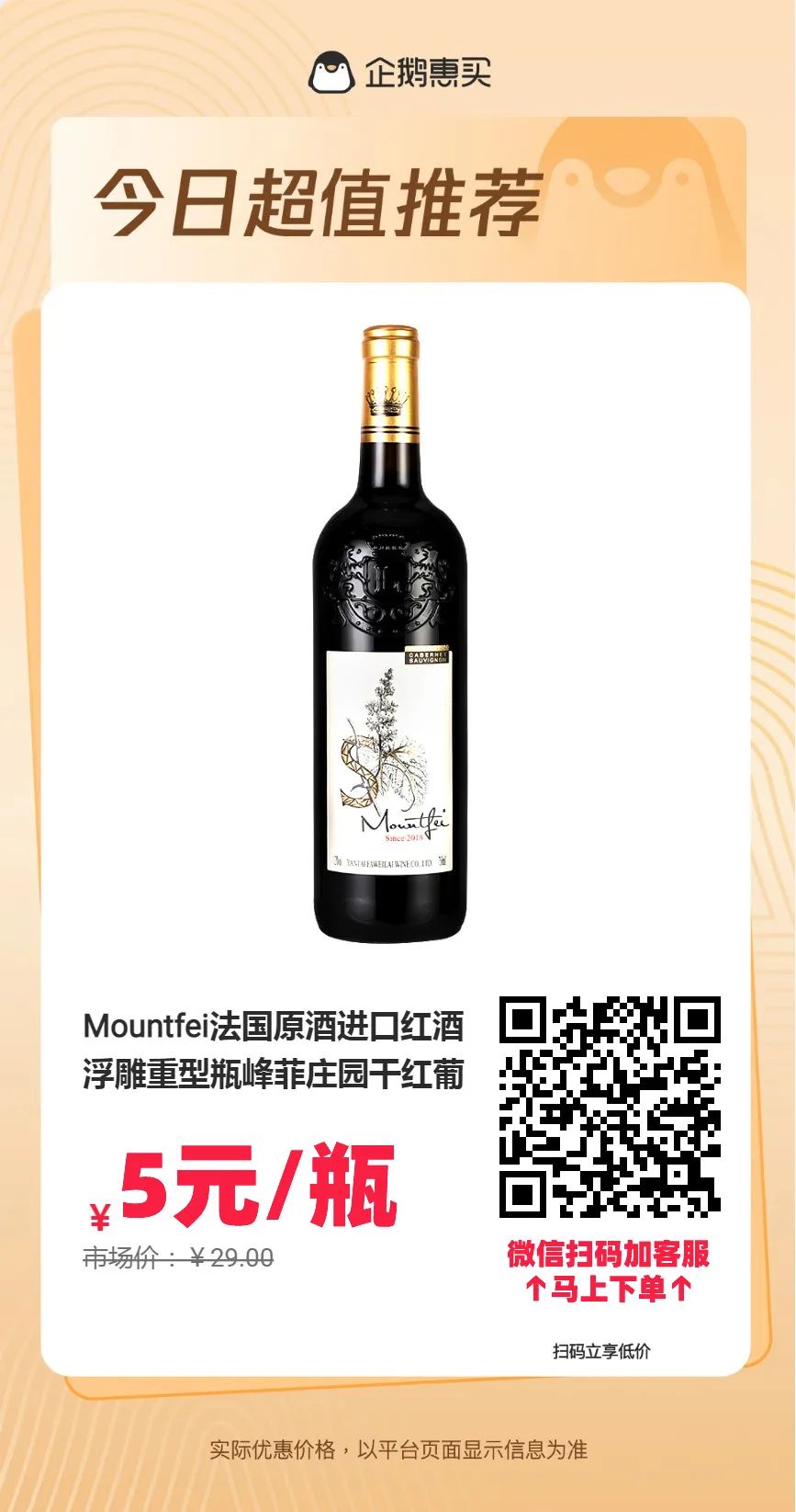 法国进口Mountfei浮雕葡萄酒1瓶5元