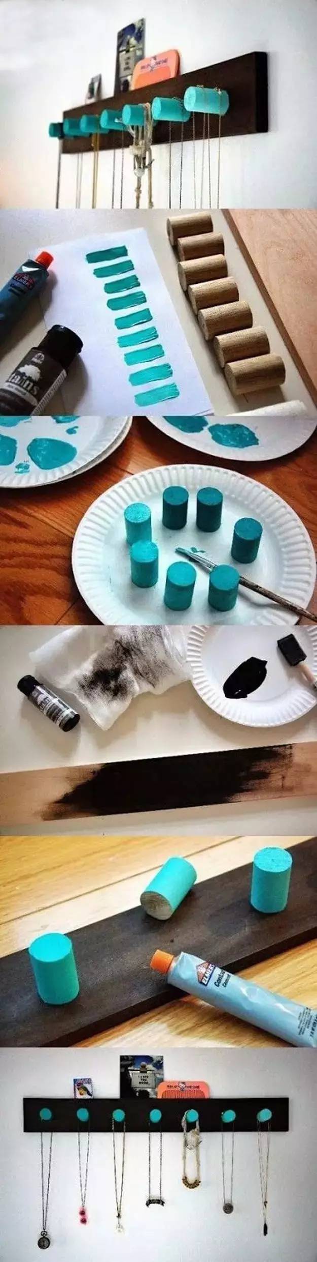 项链多了,放在柜子里容易绕成一团。自制一个项链架,有哪些项链,一目了然,随心所欲地搭配。