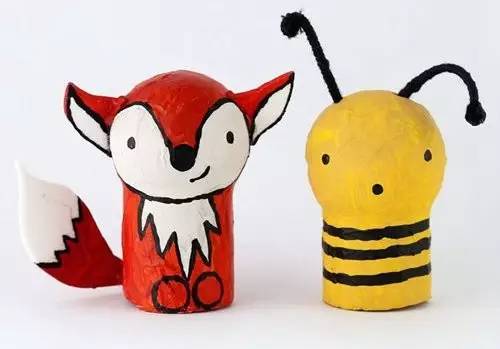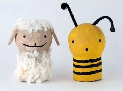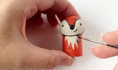 ▼这只松软的小羊的羊毛,是在小羊的头顶和身上刷上胶水,如图所示粘上的。至于小羊的耳朵、青蛙的眼睛、狐狸的耳朵和尾巴、猫头鹰的脸等,则是剪了一些白色泡沫板,用胶水固定在上面再进行作画。而青蛙的胳膊和蜜蜂的触角,则可以用一些金属丝(回形针拉直就不错),外面包裹上黑色刺绣线。