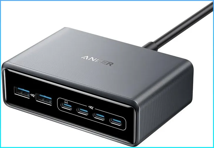 先说安克吧。他们在IFA上发布的Anker Prime 240W GaN桌面充电器,真的是把所有人都给震住了。四个输出口,单口最高140W PD 3.1快充,总功率直接拉到240W。这是什么概念呢?就是说,你可以同时给两台MacBook Pro全速充电,再加上一个iPhone和Apple Watch。