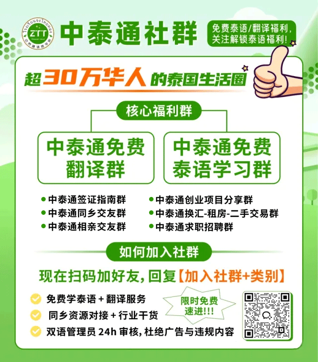 中泰通小程序,本地生活助手,汇集泰国商圈、泰国展会、二手交易、房屋租售、折扣优惠等各类便民信息,一站获取所需内容。