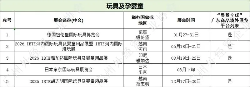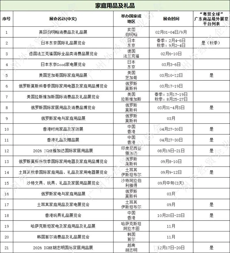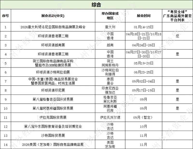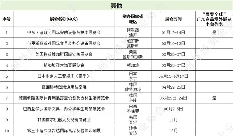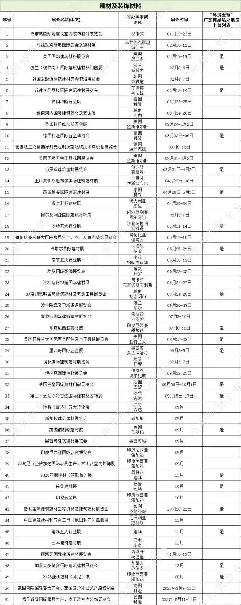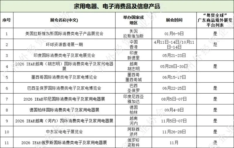为助力外贸企业拓展国际市场,协会现已整理2026年境外展推荐目录,供大家参考。