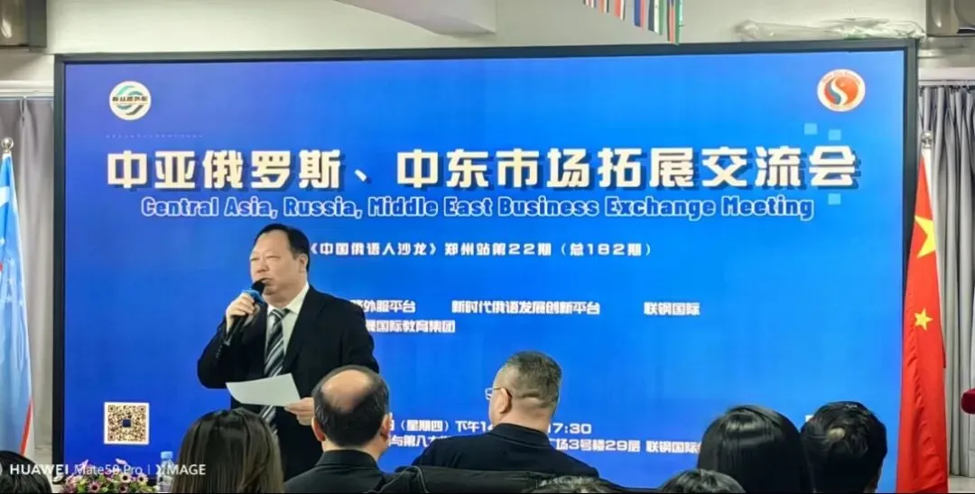 3月20日下午,在中国国际商会贸促中心的支持下,由新丝路外服平台、新时代俄语发展创新平台、联钢国际联合主办的,以介绍中国国际商会跨境展销一体化服务项目为核心的《中亚俄罗斯、中东市场拓展交流会》在郑州成功召开。本次交流会吸引了来自河北、河南等地的110余位企业负责人现场参会,新丝路外服平台组织了江苏、山东、辽宁等地的会员企业通过线上方式参加了会议。