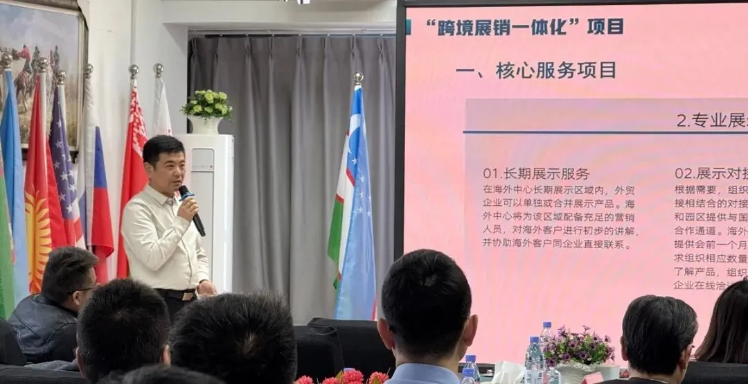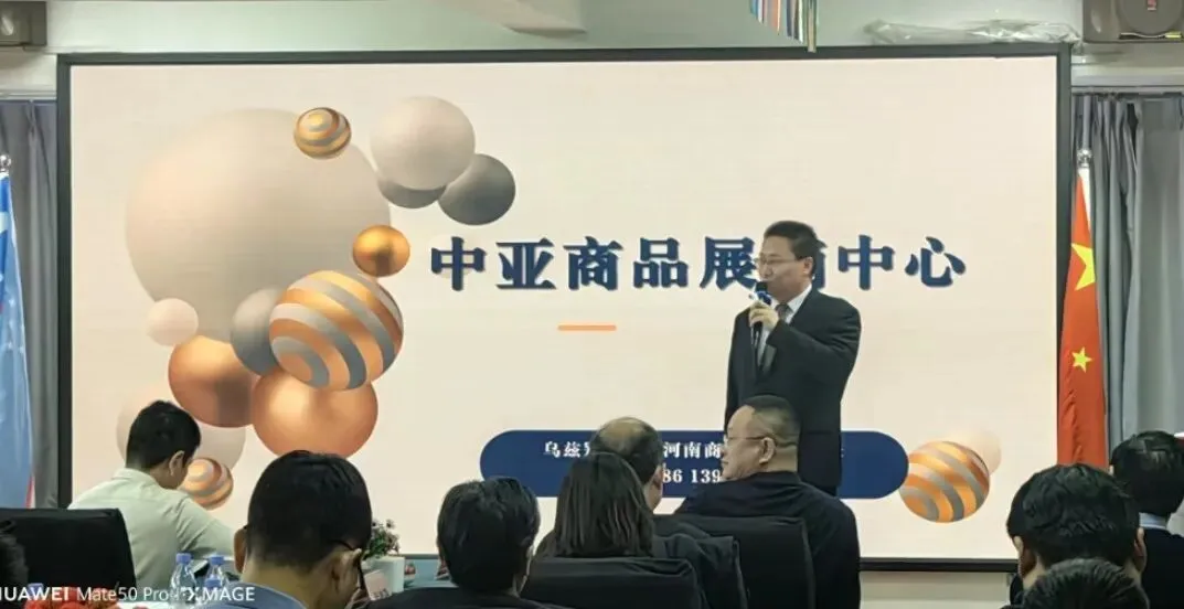 联钢国际-新丝路外服平台总经理、乌兹别克斯坦河南商会常务副会长邢培广先生,通过一段视频展示了乌兹别克斯坦中亚商品展销中心的服务内容,介绍了中亚商品展销中心的一些企业出海案例,如何以乌兹别克斯坦为核心延伸拓展到哈萨克斯坦、俄罗斯、吉尔吉斯斯坦、格鲁吉亚等周边俄语区国家市场,并且分析了2025年吉尔吉斯斯坦建筑市场的发展潜力,介绍了2025年新丝路外服平台在上述国家区域开展的一系列展会、对接交流、商务活动等。