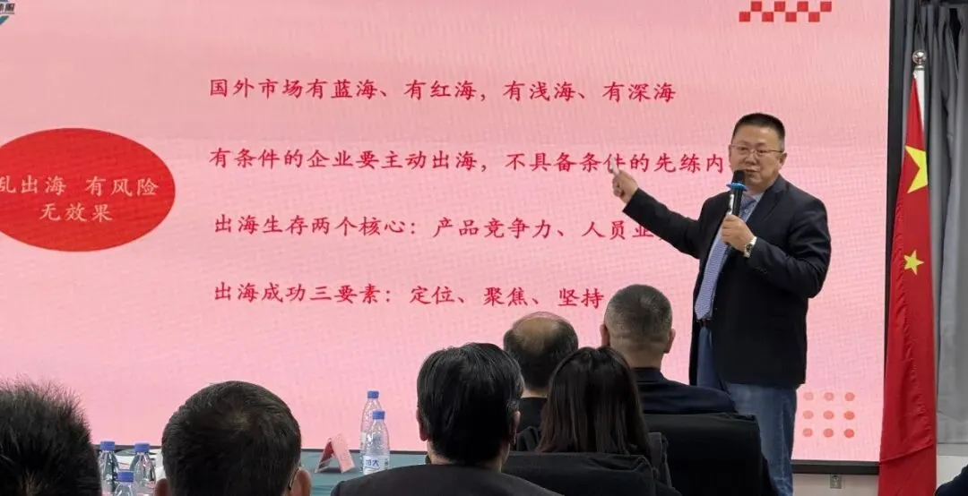 中国国际商会贸促中心林胜鸿副主任到会发言,他向大家介绍了中国国际商会2025年的贸易促进工作计划,跨境展销一体化服务项目的工作目标,更大力度的支持中国企业走出去,开拓国际市场的一些措施和内容。