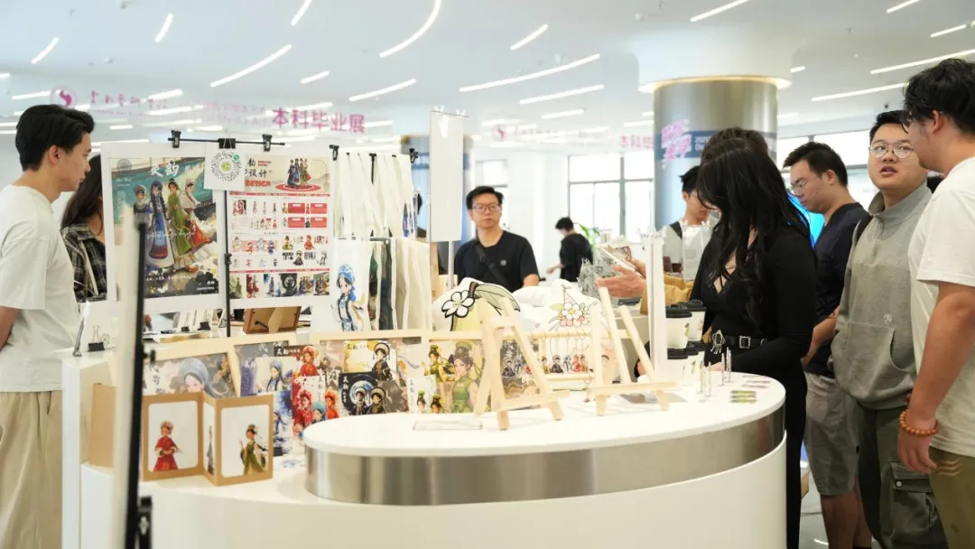 毕业展开幕式后,还举办了设计学院2025届毕业生就业“百日冲刺”行动暨毕业设计展现场招聘会(数字媒体艺术专业)。招聘沙龙环节,用人单位就企业(公司)情况、招聘需求等进行介绍,并对设计学院的人才培养、专业课程设置等提出意见建议,从而让毕业生更直观、真实地了解到岗位和市场情况。本次招聘会邀请到 19 家用人单位前来参会,提供岗位 60余个,主要涉及数字设计、动画、多媒体设计、会展设计、智能开发、文化传媒公司等领域。用人单位通过参观毕业设计展,直观了解毕业生的设计思维、应用能力等,与有求职意愿的毕业生在展览现场进行招聘交流,16 名毕业生在现场与用人单位达成了初步就业意向。
