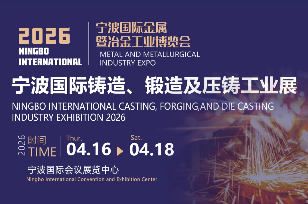 2026 年 4 月 16-18 日,宁波国际铸造锻造及压铸工业展览会将在宁波国际会展中心重磅登场,本届展会以 “精准对接、技术赋能” 为导向,打造集技术展示、供需对接、产业交流于一体的行业标杆平台,为全球铸锻产业高质量发展注入宁波动能。