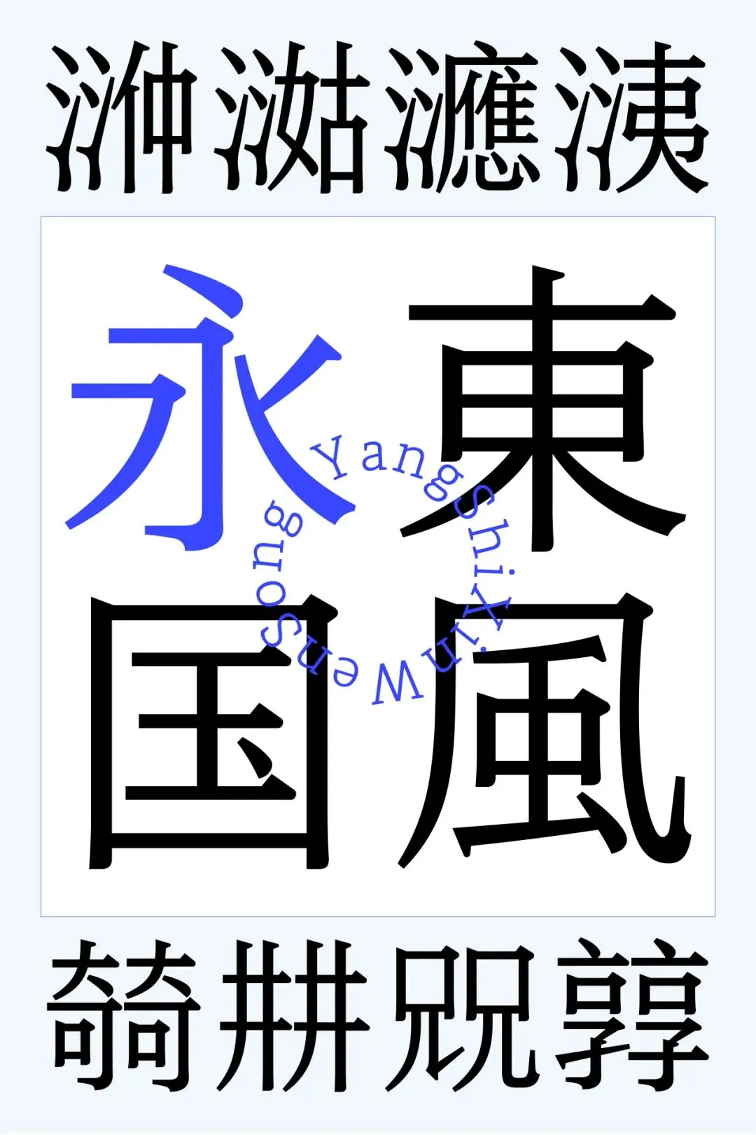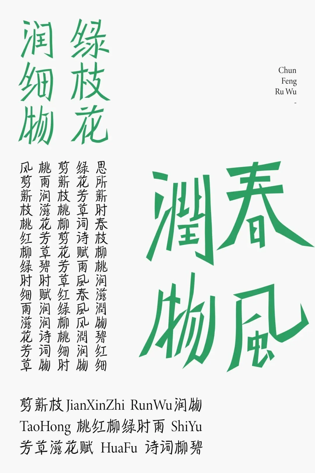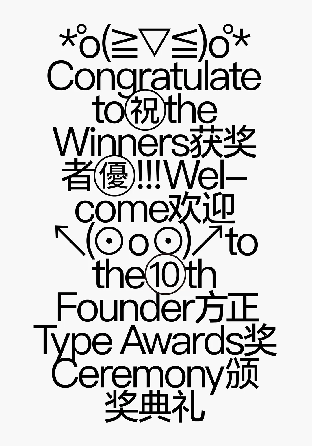 “文字不仅是承载共识、建立沟通的基本单位,也是一场意义流淌的动态现状。其伟大在于,任何以文字为圆心所弥散出的视觉修辞均有冗余之嫌。所以,在对文字轮廓的形式探索之外,理应存在着一条通过音形类比、寓意寻溯和语境转译等方式,触及其内部广阔世界的幽径 — 作为设计师,走上这条路,从形式的美丑新旧中将文字的“意义域”复现出来,重构受众的认知,于我而言极为重要。”
