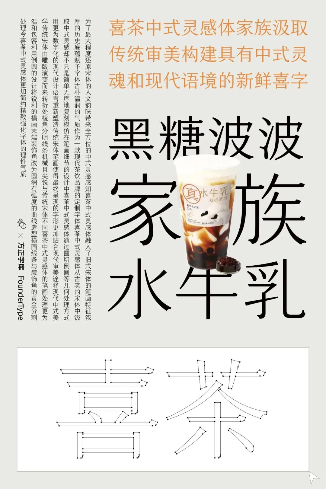 主创作品有《方正自留宋》系列;主创品牌定制字体有喜茶中式灵感体、央视新闻宋、福田自由体、古茗体、速写悠宋、携程跃动体、周大福体等;